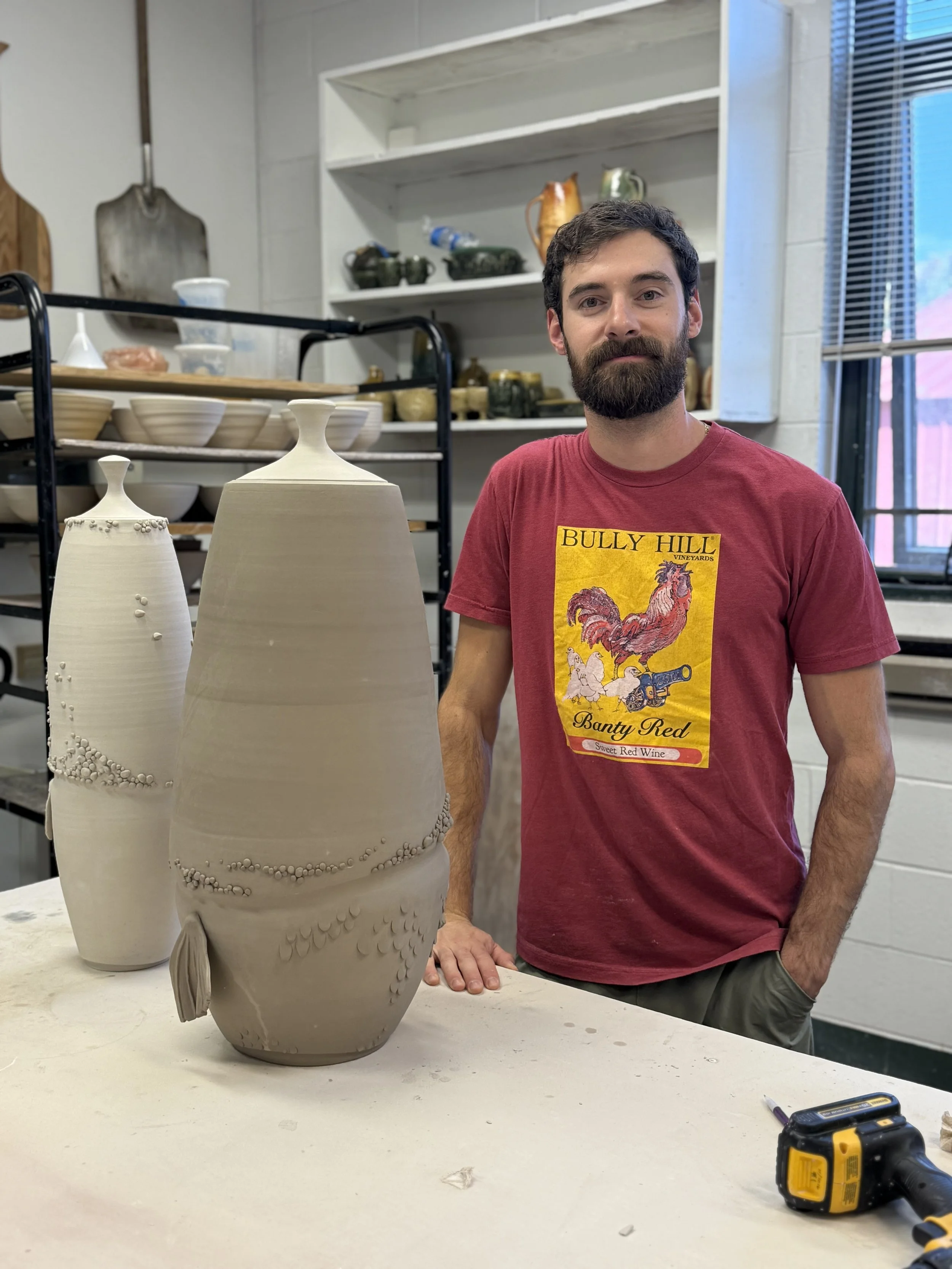 Sam Wilson is a 3rd year graduate student focusing on large sculptural forms and atmospheric firings, finding new ways to push clay’s boundaries.